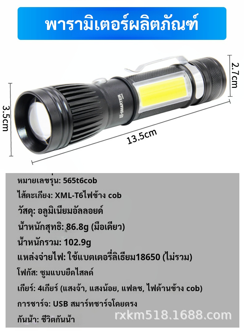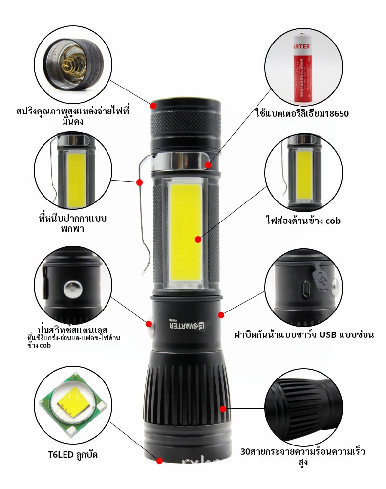 - ข้อมูลจำเพาะ: ทำงานร่วมกับ1ชิ้นแบตเตอรี่ (18650)