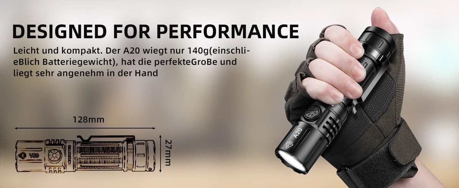 - A20 ให้กําลังส่องสว่างที่น่าทึ่งถึง 2,000 ลูเมนจากชิปปปีกผีเสื้อเป็นเครื่องมือที่สมบูรณ์แบบสําหรับผู้ใช้ในสาวะที่ไม่เอื้ออํานวย เช่น การค้นหาและกู้ัย หรือความพยายามกลางแจ้งสุดขั้วอื่นๆ