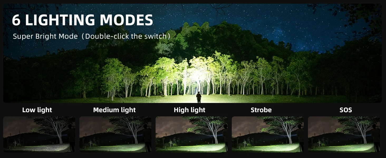 2.คลิกปุ่มสวิตช์ด้านหน้าเพื่อเปิดโหมดแสงน้อย และกดลําดับการเปลี่ยนเกียร์ต่อไป (แสงอ่อน - แสงปานกลาง - ไฟแรง - แฟลช - SOS - ปิด) ตามลําดับ