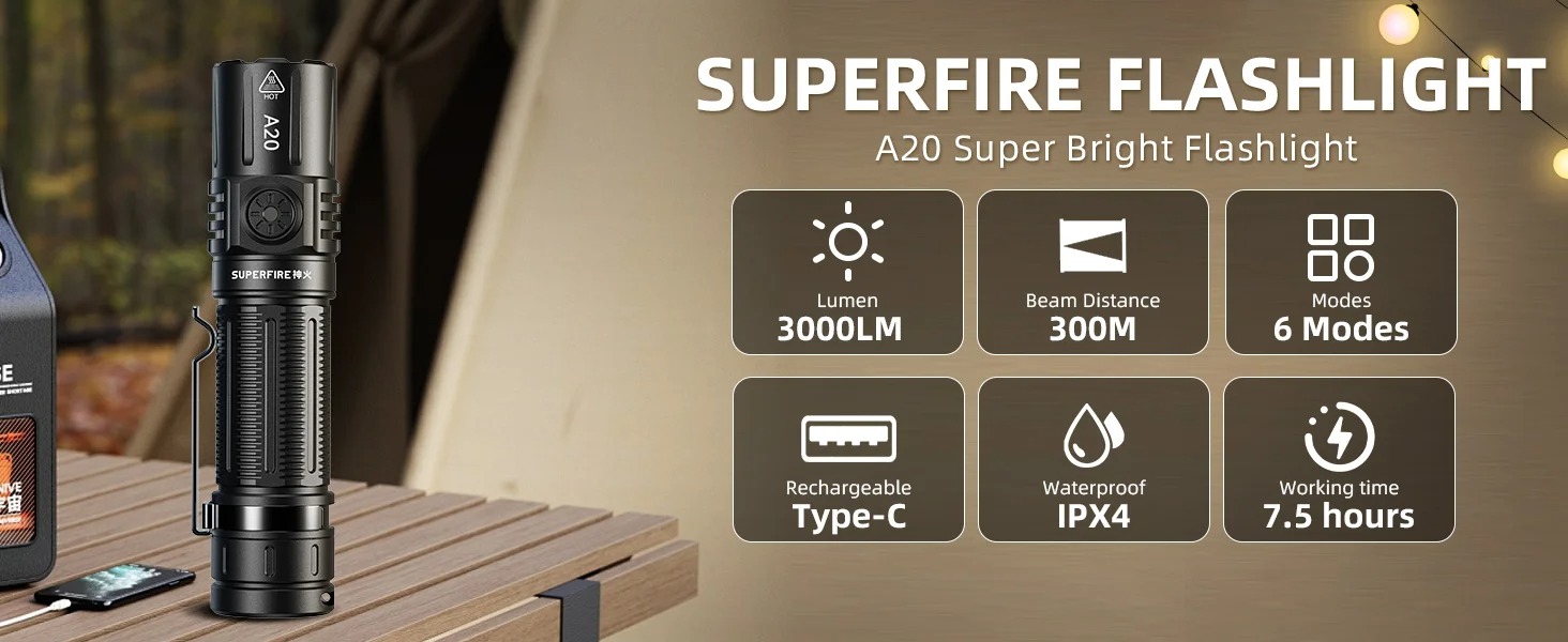- A20 เป็นไฟฉายฟลัดไลท์ที่สว่างเป็นพิเศษขนาด 2000LM เหมาะสําหรับกิจกรรมกลางแจ้ง