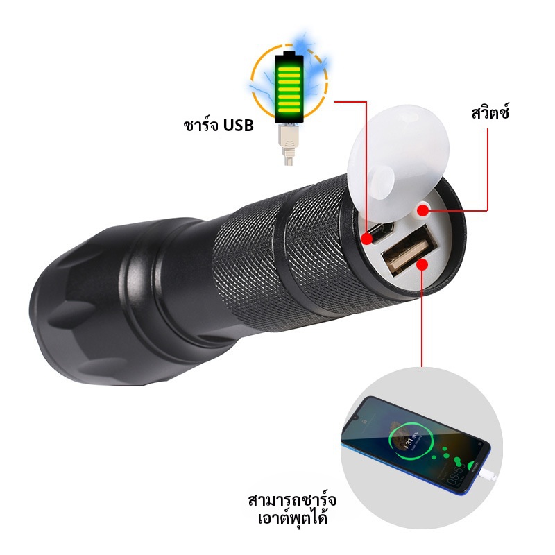 - สะดวกสบายในการชาร์จด้วยสาย USB