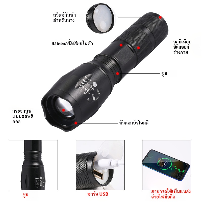 1* Flashlight (Included LI-on Battery 4000Mah)